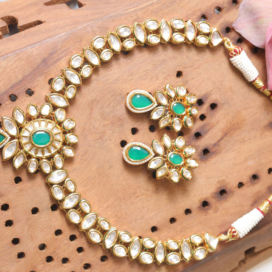 Kundan Necklace Set with Mint Green Stone Earings