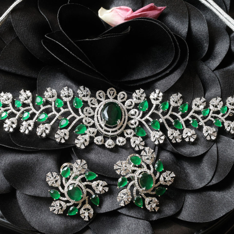 Embrace timeless elegance with our Necklace featuring exquisite emerald green stones, a true testament to Tangilal Jewellers' commitment to exceptional quality and meticulous craftsmanship. Each stone is meticulously handpicked, highlighting your sophisticated taste and adding a vibrant touch to any ensemble. Experience the luxury and sophistication that have made Tangilal Jewellers a revered name in the world of fine jewelry. Make a statement with this captivating piece, designed to be cherished for a lifetime.